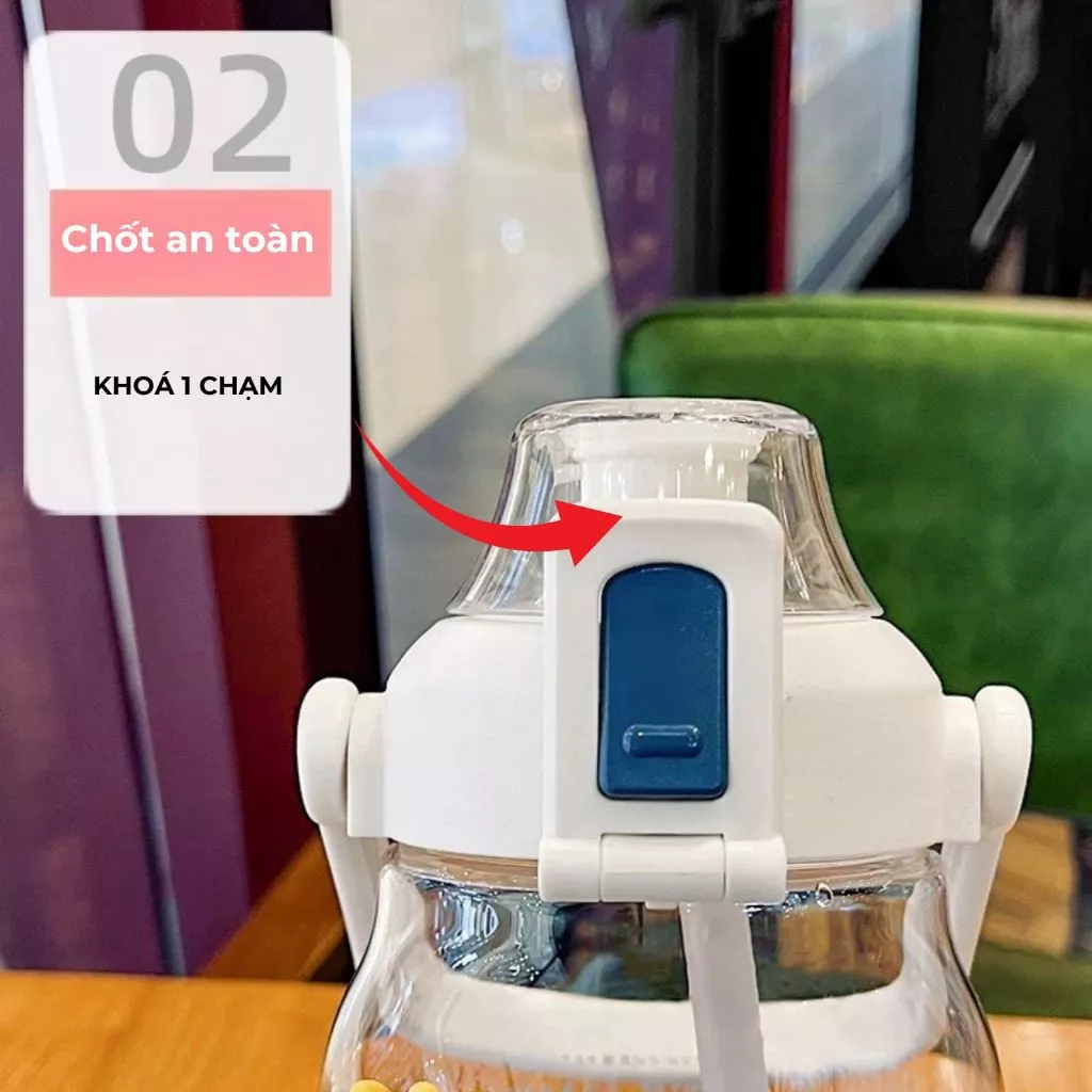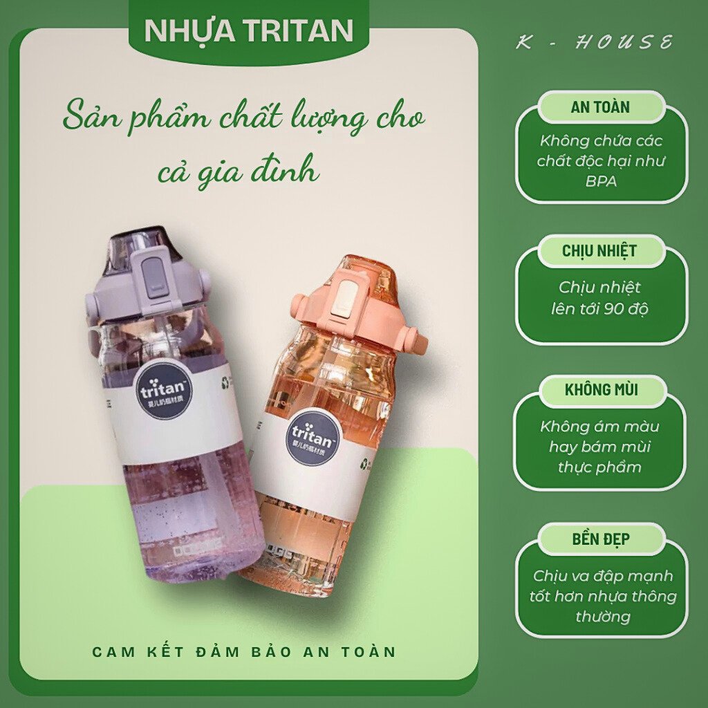 Chất liệu Tritan cao cấp an toàn không BPA, có khóa chống rò rỉ, quai xách tiện mang theo và tặng kèm sticker trang trí.
