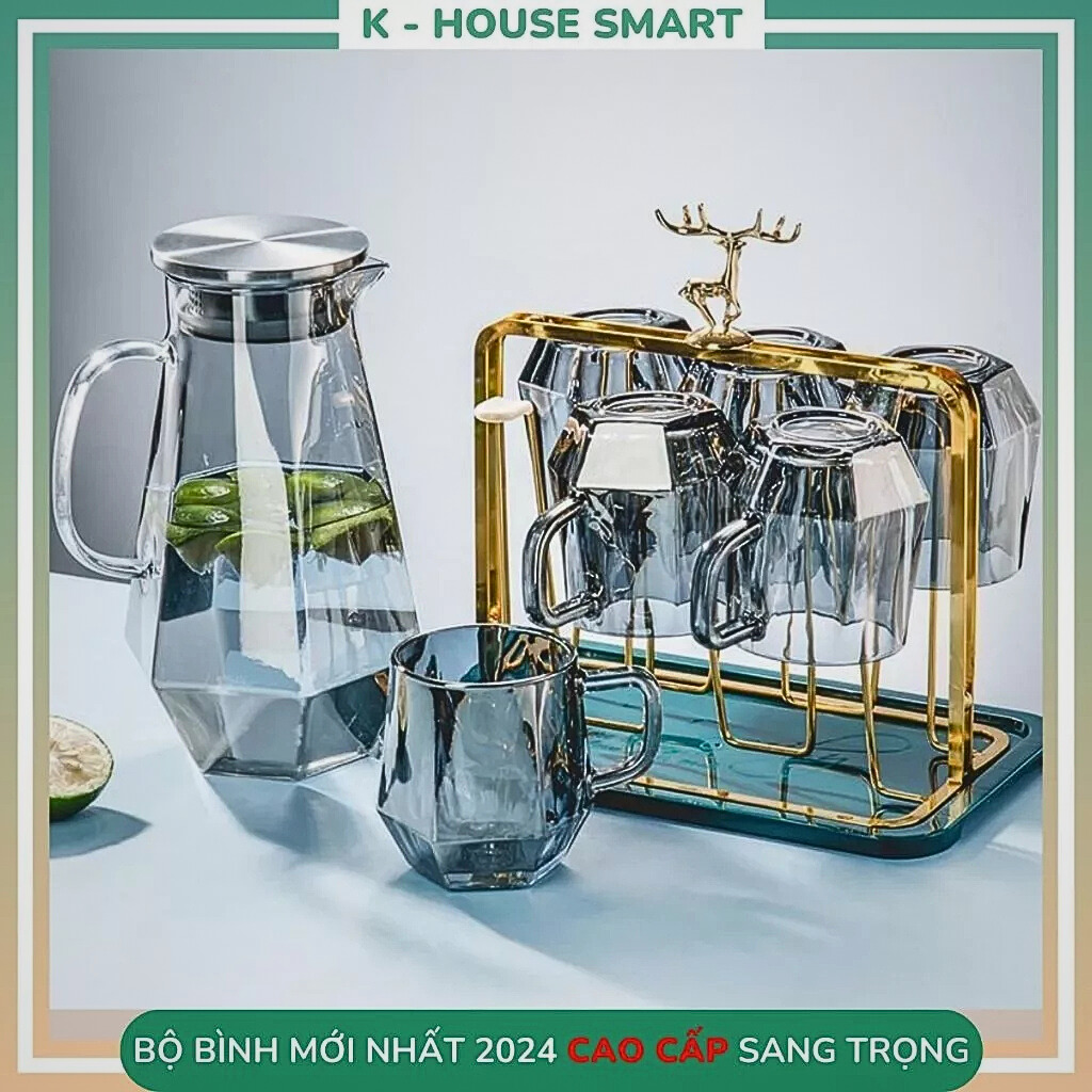 Bộ bình nước thuỷ tinh để bàn K-House Smart