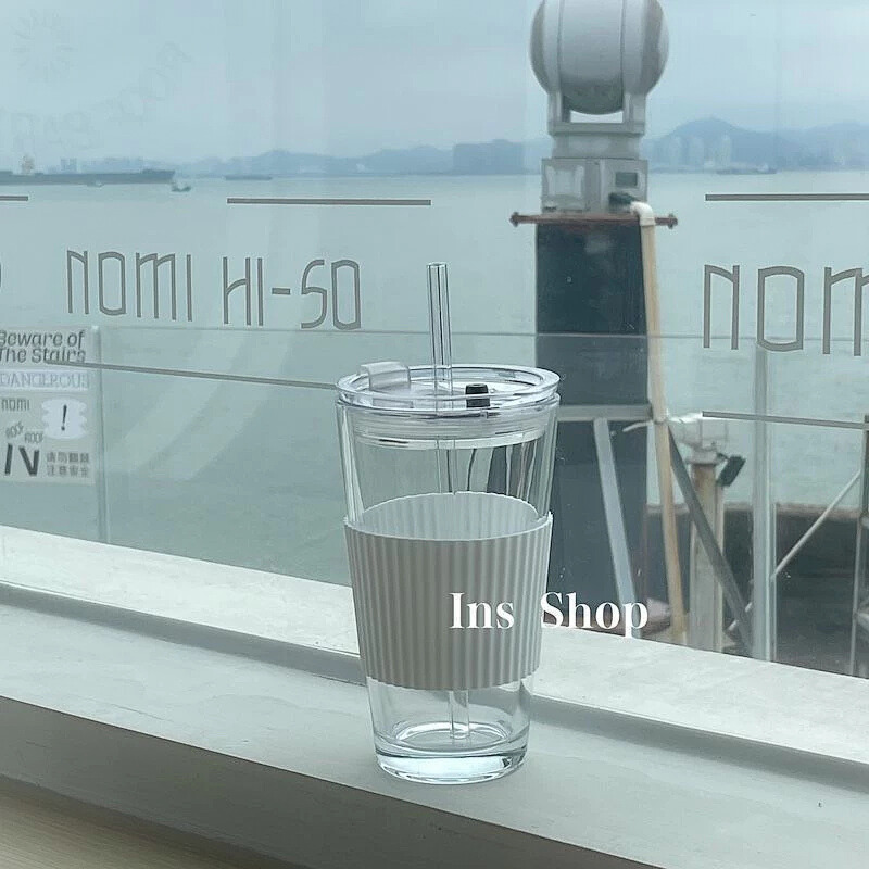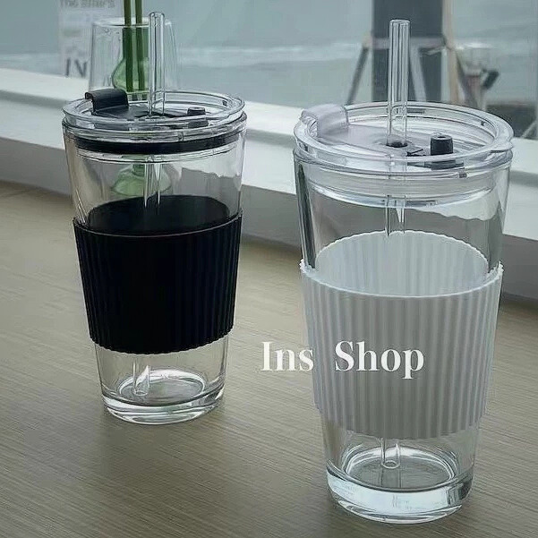 Cốc thuỷ tinh cao cấp 450ml K- House Smart – màu sang trọng, chất liệu thuỷ tinh không chì dày dặn, chịu nhiệt tốt đến 100°C, thiết kế nắp kèm ống hút tiện lợibọc silicone chống trơn, phù hợp dùng uống nước, trà, sinh tố hằng ngày.